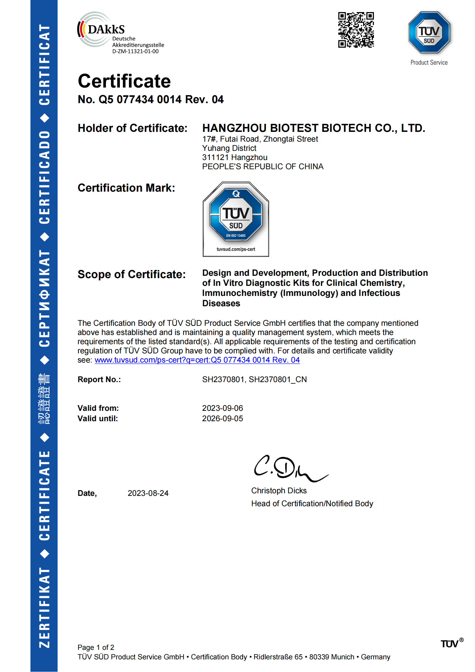 博拓护肤品遍及医药学定期检查的众多方向,具有傳呼吸道传染病检则、药剂错用(毒品种类)检则、癌肿符号物检则、心肌符号物检则和生殖医学平台身体检则等四大一系列,在各个等级医院门诊、疾控平台、血站、禁戒毒和第三步方定期检查平台具有广泛性的使用。单位已依据德TUV ISO13485服务质量保障体系验证,题干护肤品具有中NMPA注册公司、欧盟成员国CE验证和新加坡FDA 510(k)资质证书。