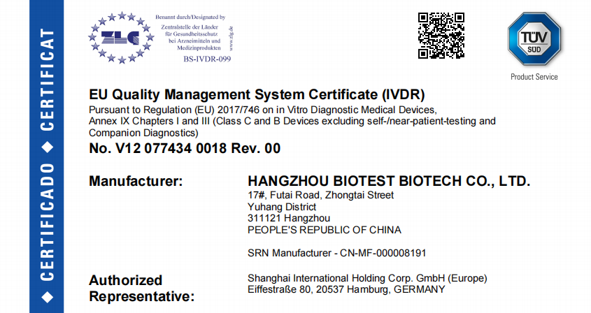 此次质量管理体系IVDR证书和多项产品IVDR认证的获得,是公司自登录科创板上市和获得医疗器械单一审核程序(MDSAP)证书以来又一个里程碑式的突破,在践行公司质量方针和差异化产品发展策略方面具有重要意义。新IVDR证书的获得,一方面标志着AG庄闲集团 已经成为符合欧盟新体外诊断医疗器械法规IVDR CE认证要求的医疗器械制造商,为公司后续其它产品的欧盟认证切换工作奠定了坚实的基础;另一方面,也是对过去一年博拓所有IVDR项目参与人员辛勤付出的认可,同时激励着博拓人更快、更高质量的完成后续产品的IVDR注册工作。